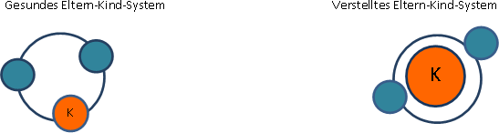 Bewegt sich das Familiensystem im Idealfall harmonisch auf einer Ebene, wird im verstellten Familiensystem das auffällige Kind so zu sagen der Fixstern der Familie, um den sich alles dreht.